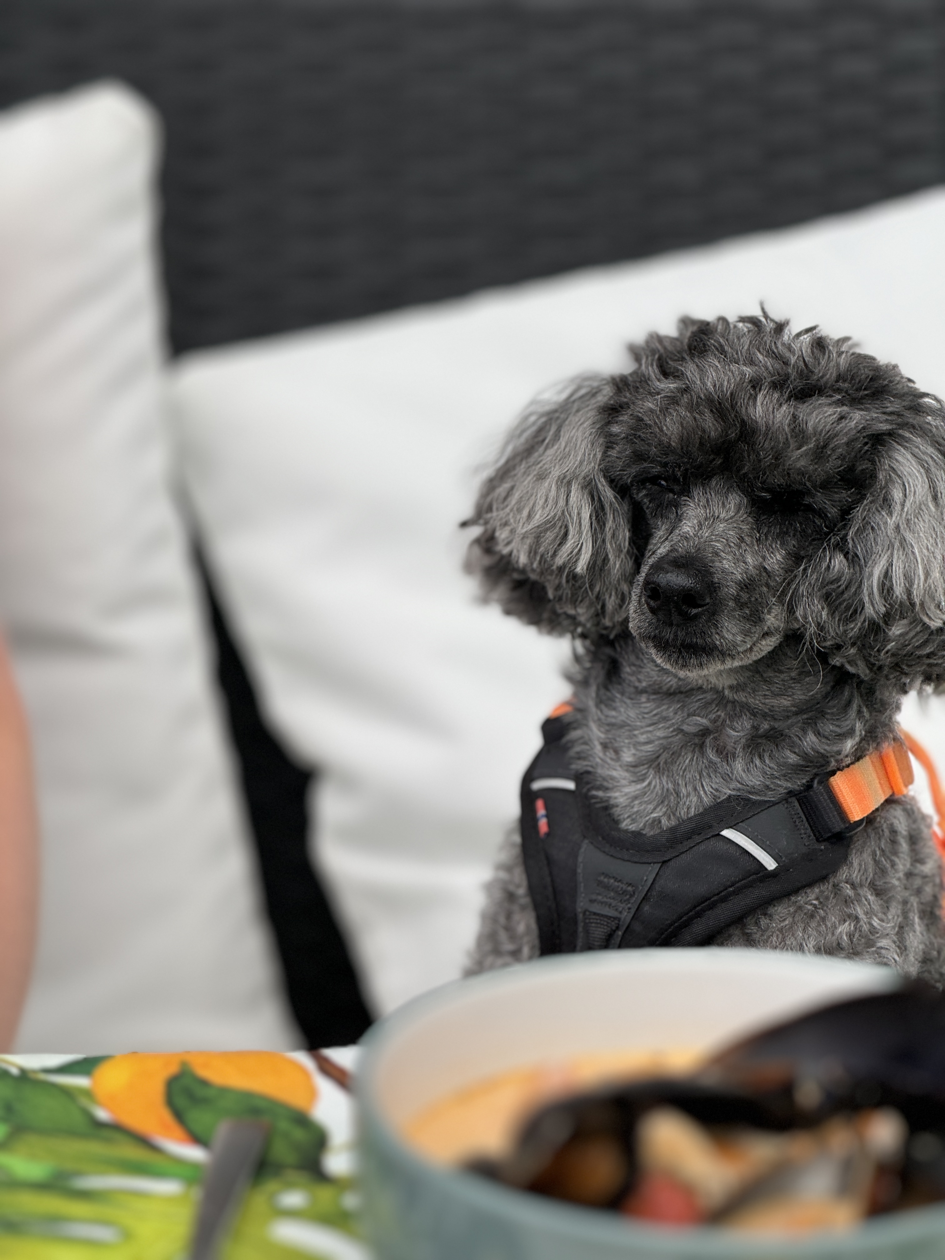 Puudelicatessenille* nimen innoittanut ja toimintaa tarkasti valvova puudeli Tuisku Vettenranta toivottaa erityisesti kivat koirakamut mukaan ostoksille!
